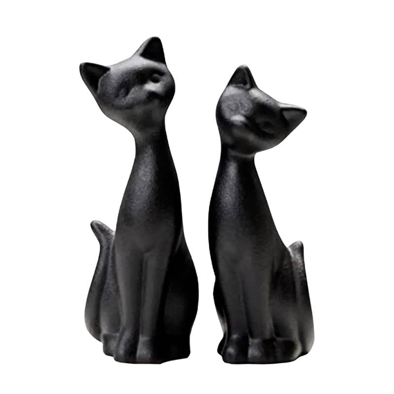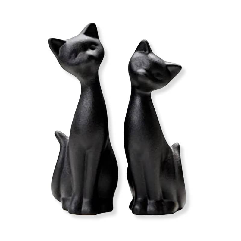 Figurine Chat Noir en Céramique : Un Duo Élégant et Enigmatique