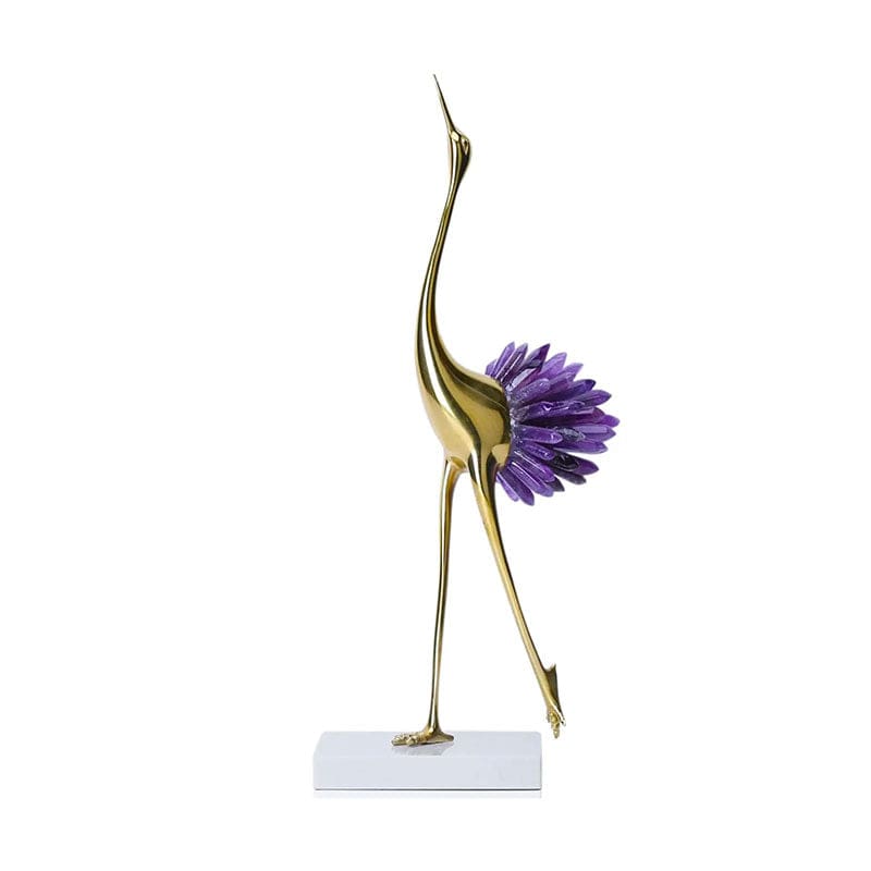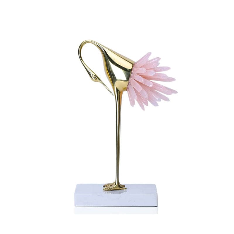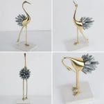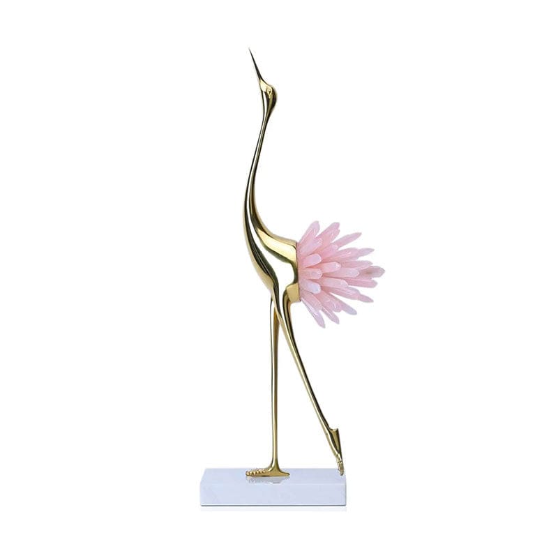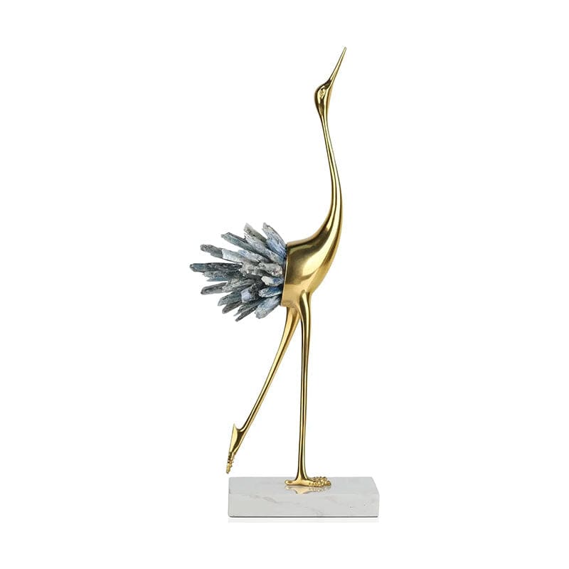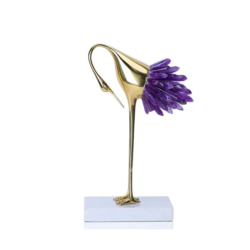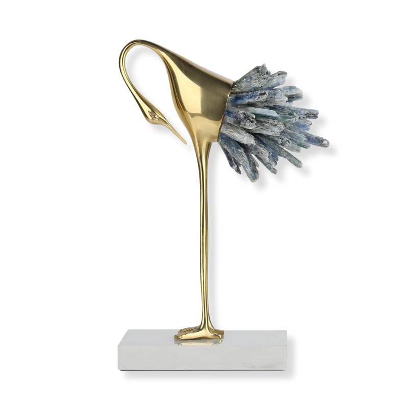 • Matériaux Mixtes : La structure en métal doré contraste élégamment avec les détails en pierre colorée, capturant la forme gracile d’un oiseau avec une touche poétique.