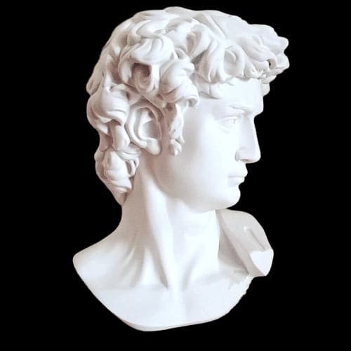 Les étudiants en art ont longtemps admiré la beauté du visage de David, mais rares sont les sculptures atteignant la renommée de ce fascinant buste de David. Flaire tantôt l’ombre et la lumière du visage emblématique, cette étude de buste met en valeur la délicatesse et la forme des traits masculins.