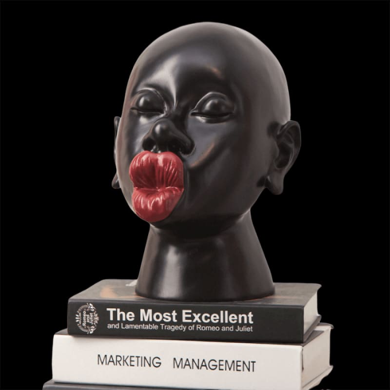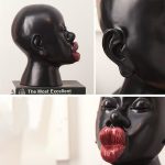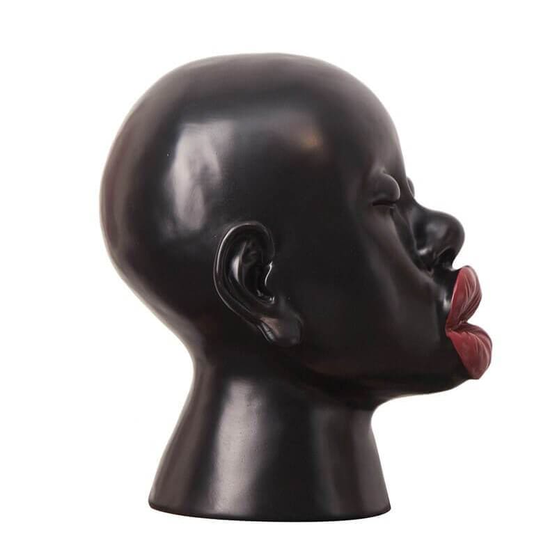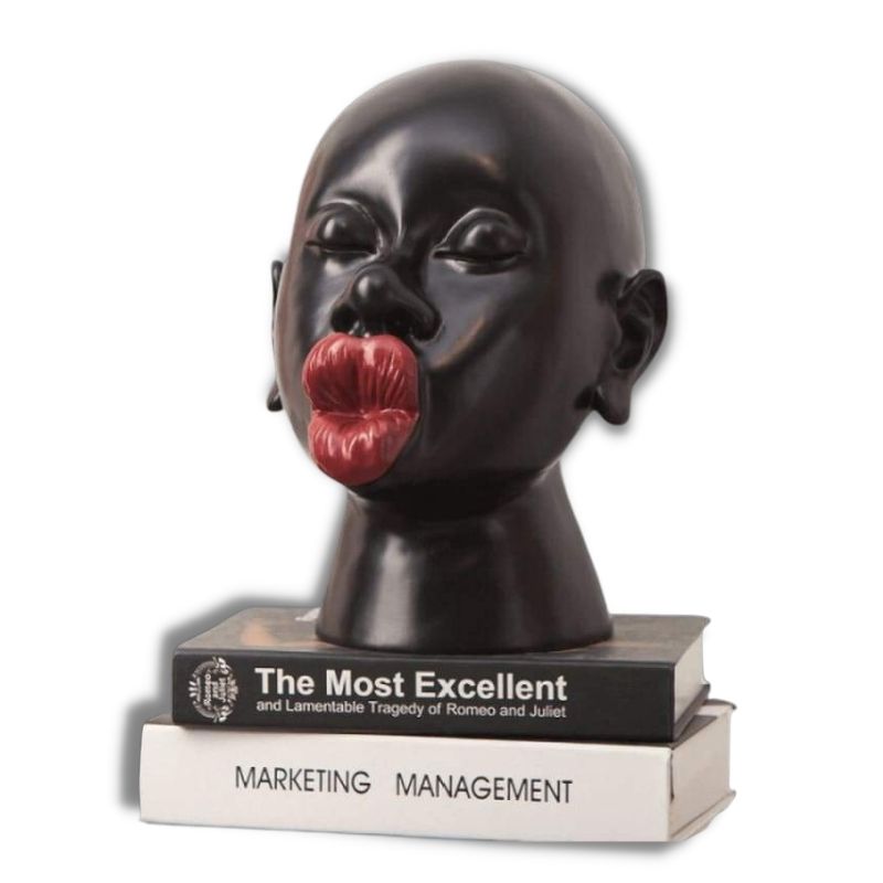 Une élégante statue en noir représentant une femme embrassant avec passion, idéale pour les amateurs de décoration intérieure sophistiquée.